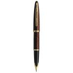Immerse yourself in the opulence of the Waterman Carène Fountain Pen, a writing instrument that embodies luxury and finesse. With its deep, undulating dark brown and black lacquer barrel, this pen is not just a tool but a statement of style. The rich golden trim and 23-karat gold clip add a touch of vibrant sophistication, making it a standout accessory for any discerning writer.